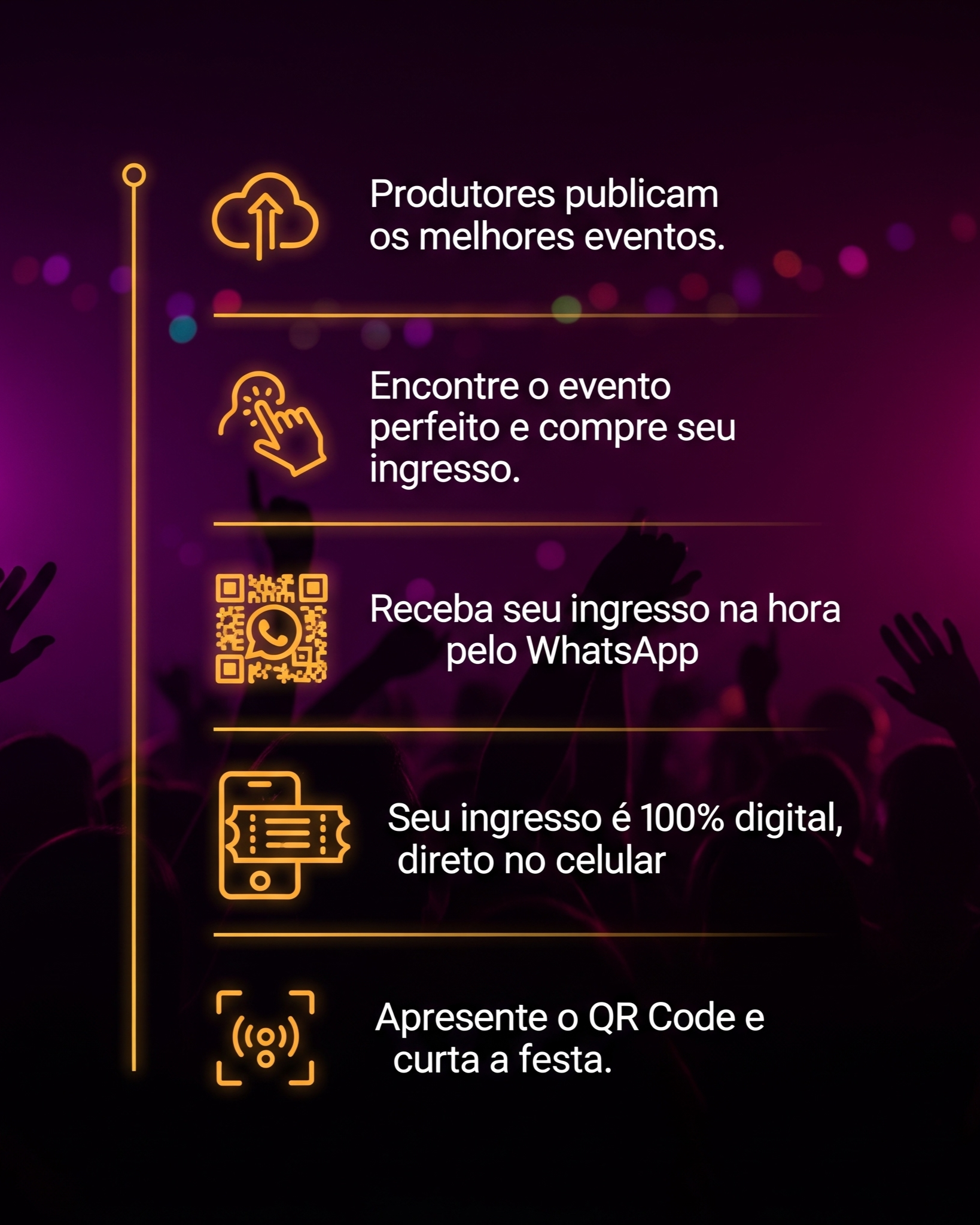 O QR Party nasceu de uma ideia simples: facilitar a vida de quem curte festas. A gente sabe como pode ser chato ter que sair de casa só pra comprar um ingresso, enfrentar fila, pagar taxa de entrega ou até correr o risco de perder um evento legal por pura falta de praticidade. Pensando nisso, criei essa plataforma com um propósito: deixar a compra de ingressos mais rápida, acessível e sem complicação.